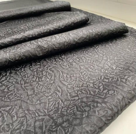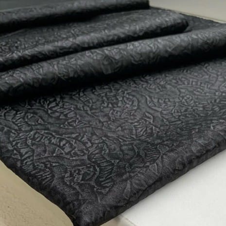 Плотная костюмная атласная ткань с жаккардовым рисунком.